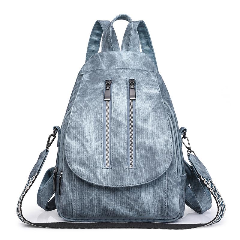 Рюкзак с двойной молнией, женский рюкзак из мягкой кожи из искусственной кожи, большой вместительный дорожный рюкзак, школьный рюкзак для студентов синий