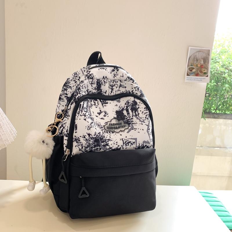 Рюкзак с принтом, милый школьный рюкзак для младших школьников, женский рюкзак большой емкости с цветными блоками Small чёрный