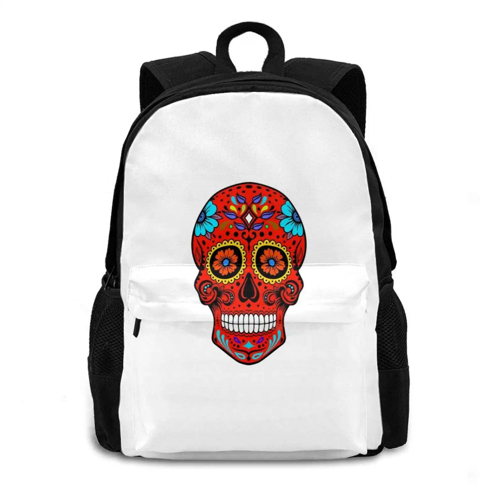 Рюкзак с черепом для мужчин и женщин, красная сумка с рисунком сахара в виде черепа для подростков