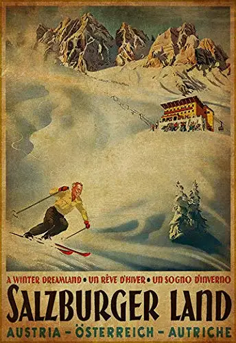 Винтажный агемелевый оловянный знак для катания на лыжах, зальцбургеров, Land, Австрия, катание на лыжах, Зимние виды спорта, семейный бар, рес...