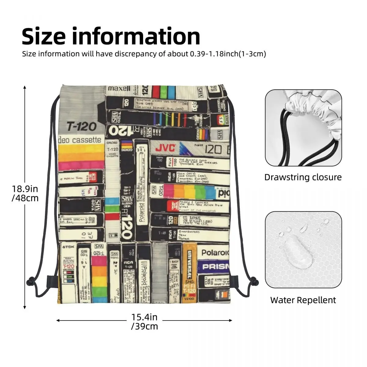 Рюкзак VHS на шнурке, винтажная сумка через плечо для книг, сумка на молнии для спорта и Путешествий, Походов, Портативная сумка