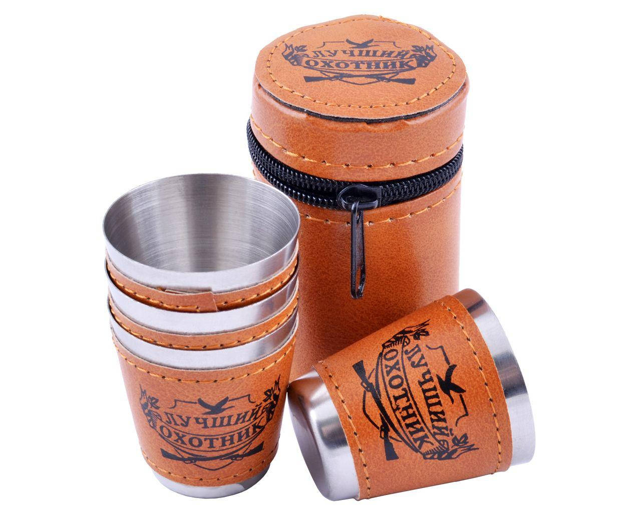 Рюмки в кожаном чехле Лучший Охотник (4 шт) 30 мл PM-20-2
