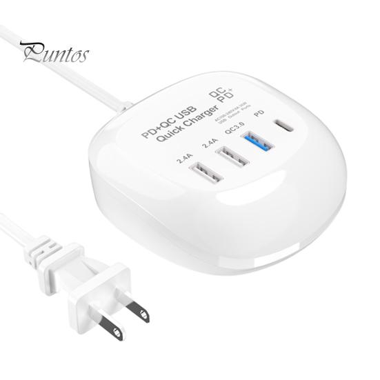 Рядная USB-розетка с множественной защитой, интеллектуальное согласование тока QC3.0 PD, 20 Вт, настольная зарядная станция для телефона, планшета с 4 портами, бытовые принадлежности US Plug белый