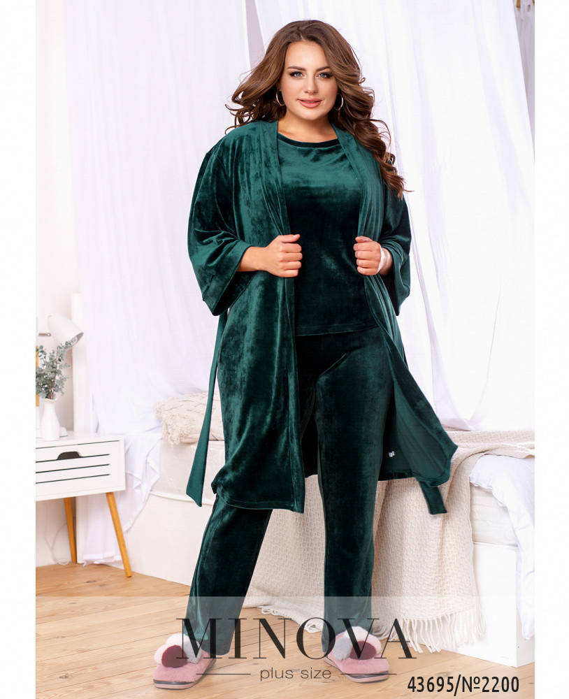 Р. 50-68 Женский велюровый домашний костюм тройка Батал