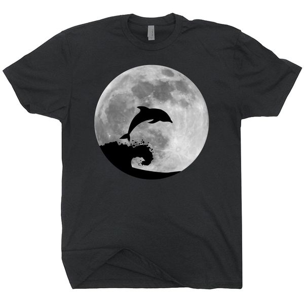 2019 мода лето горячей продажи дельфин полнолуние футболка ретро рубашка tee рубашка