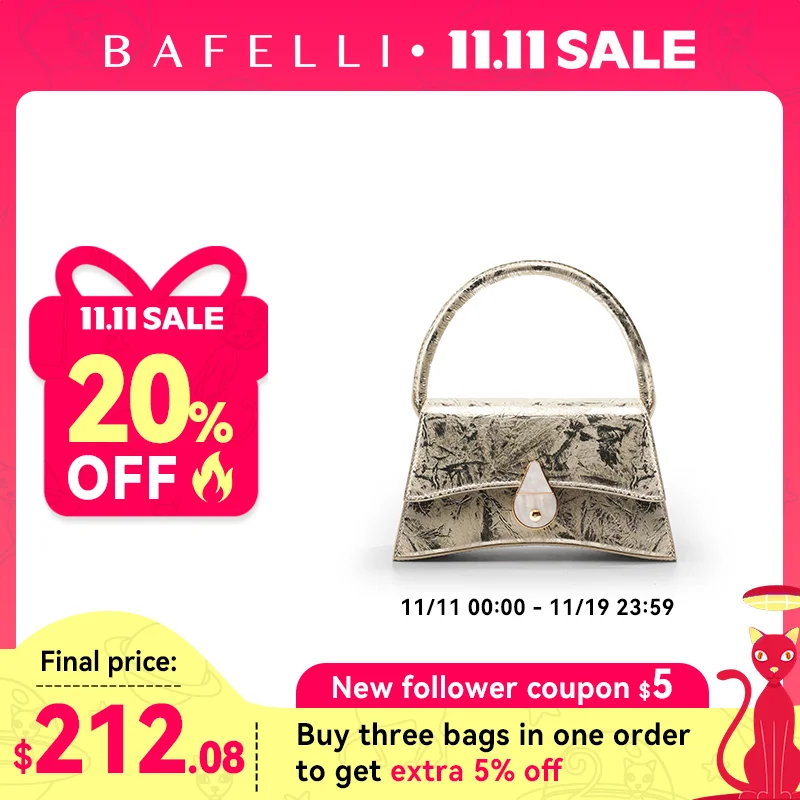 SILVER GENUINE LEATHER BAFELLI ORIGINAL HANDBAG 2025 FASHION CROSSBODY NEW WOMEN'S BAG LUXURY STYLISH EVENING PARTY CASUAL PURSE