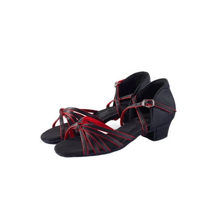 Ymiytan Kids Dance Shoes Ballroom Latin Shoe Ankle Strap Sandals Performence Lightweight Cross-Strap Tango Red Black 12C