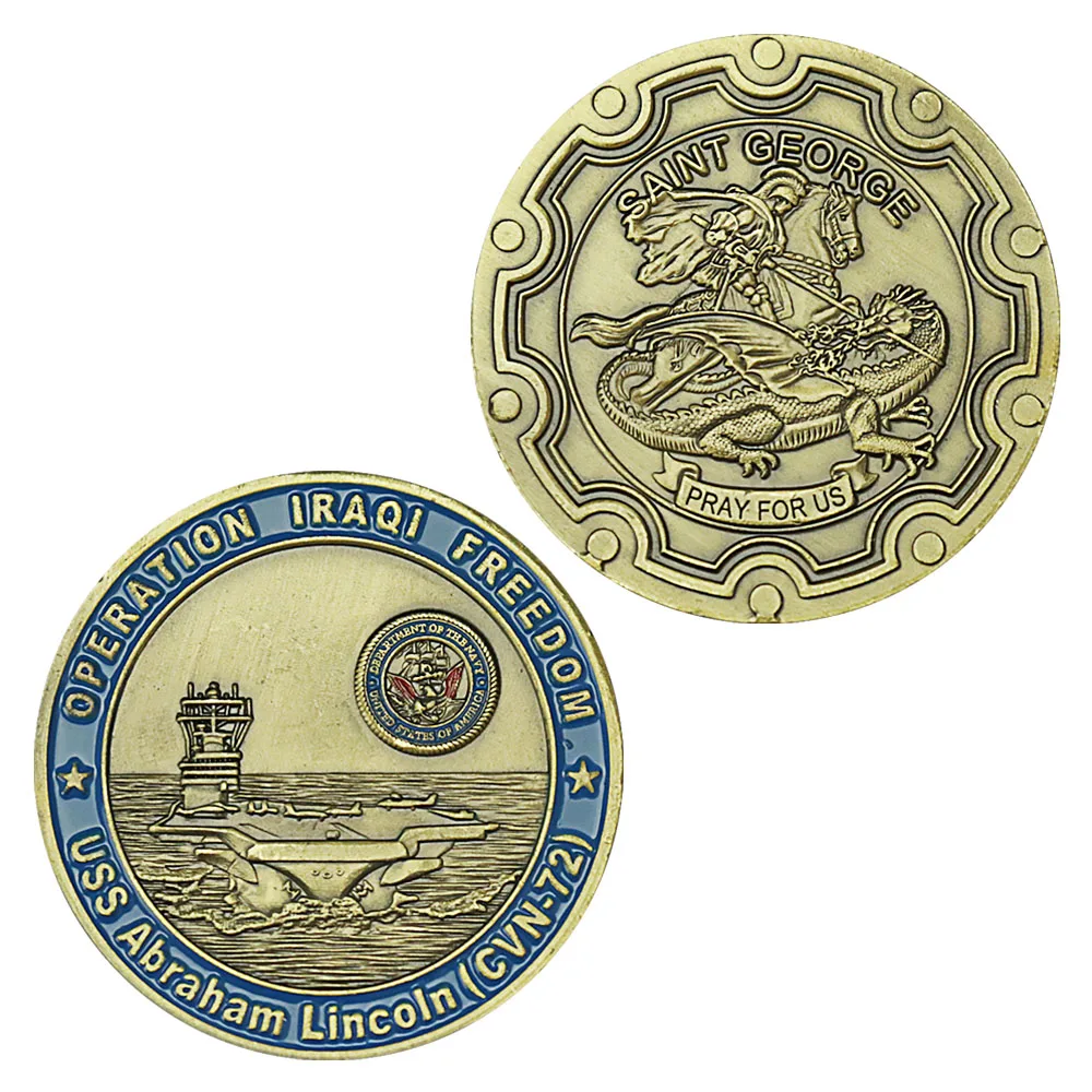 США Авраам Линкольн (CVN-72), авиаперевозчик, сувенир, монета с бронзовым покрытием, монета с изображением святого Джорджа, памятная монета