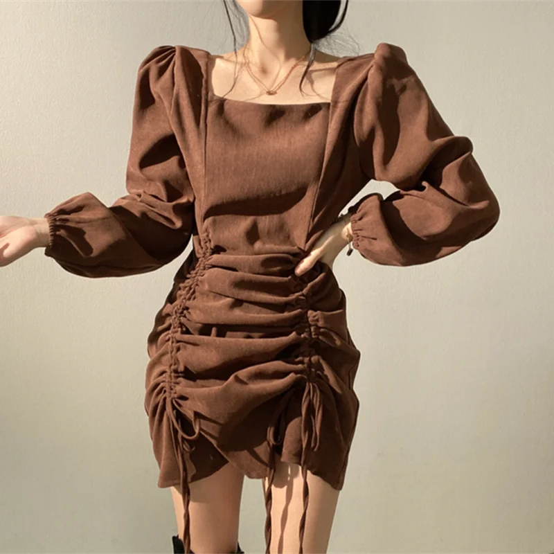 Autumn Winter Women Puff Sleeve Mini Party Dress Female Casual Vintage Long Sleeve Streetwear Bodycon Dress