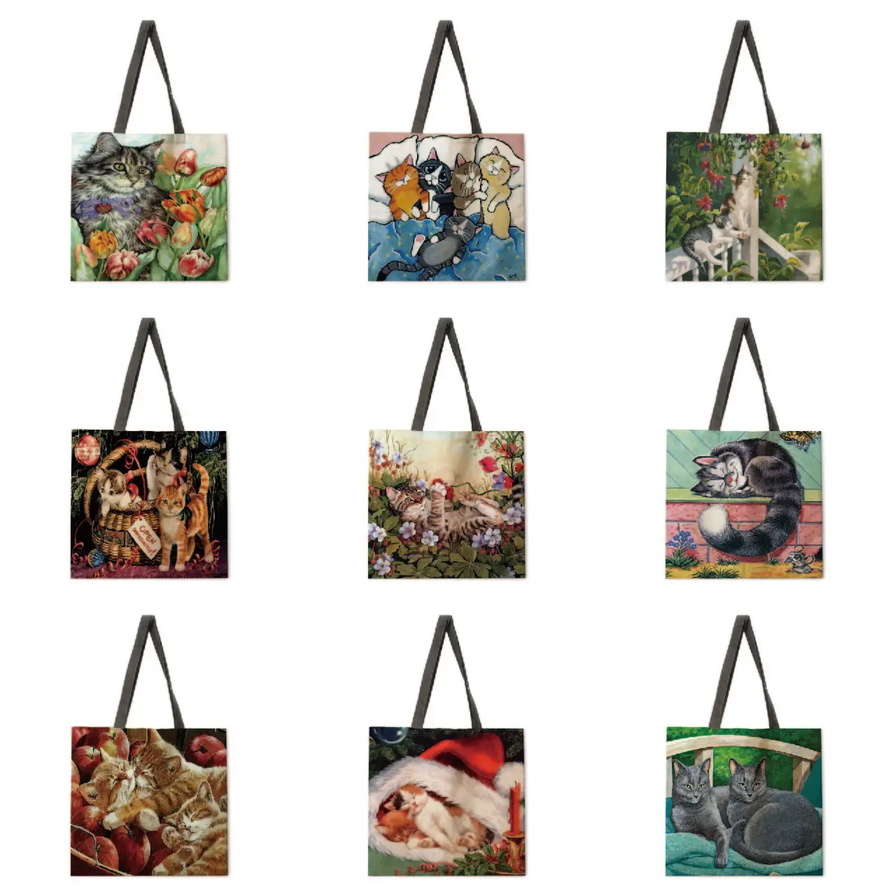 Садовые дамские сумочки с рисунком кошки, женская сумка на плечо, модные уличные пляжные мешки для покупок с масляным рисунком