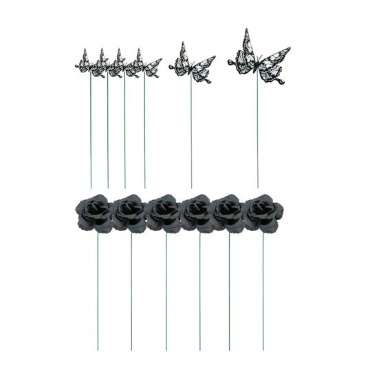 Садовый кол, прочный кол в виде бабочки, черная роза, земляной кол для праздничных вечеринок, уличное украшение чёрный