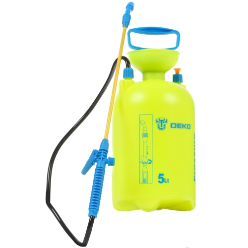 Садовый опрыскиватель DEKO DKSP06, длина шланга 1.3 м, наплечный, помповый, бак 5 л, зеленый/голубой (065-0938), DKSP06