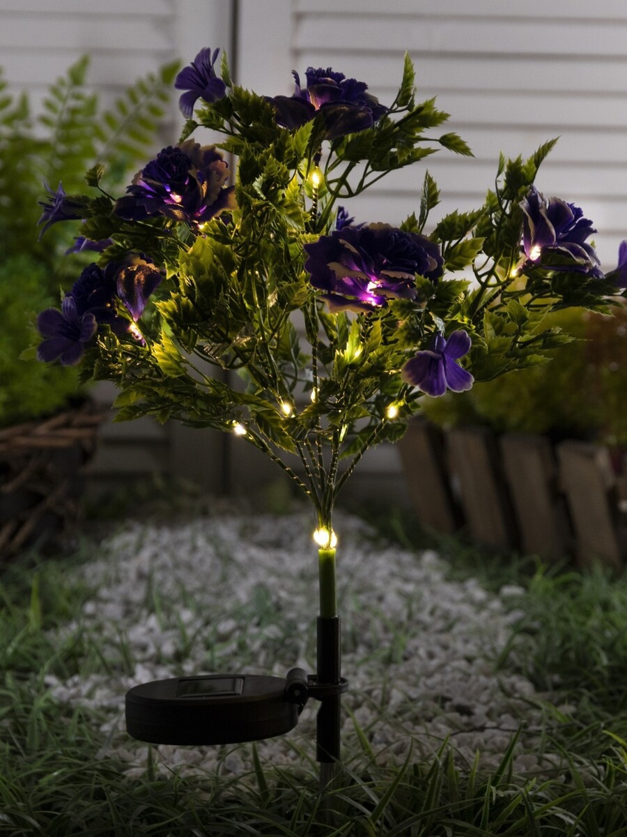 Садовый светильник «Кустовая роза», уличный, на солнечной батарее, 62 см, 28 LED, свечение теплое белое.