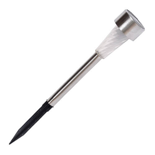 Садовый фонарь, уличный светильник для установки в землю и автономного освещения территории. Полностью автономная работа. Встроенная солнечная панель, аккумулятор и фоторезистор, т.е. в светлое время фонарь заряжается, а в темное - светит Цвет свечения: белыйПолзунок on/off Материал корпуса: металл + пластикРазмер: 30 (штырь - 10.5) x 4.5 см