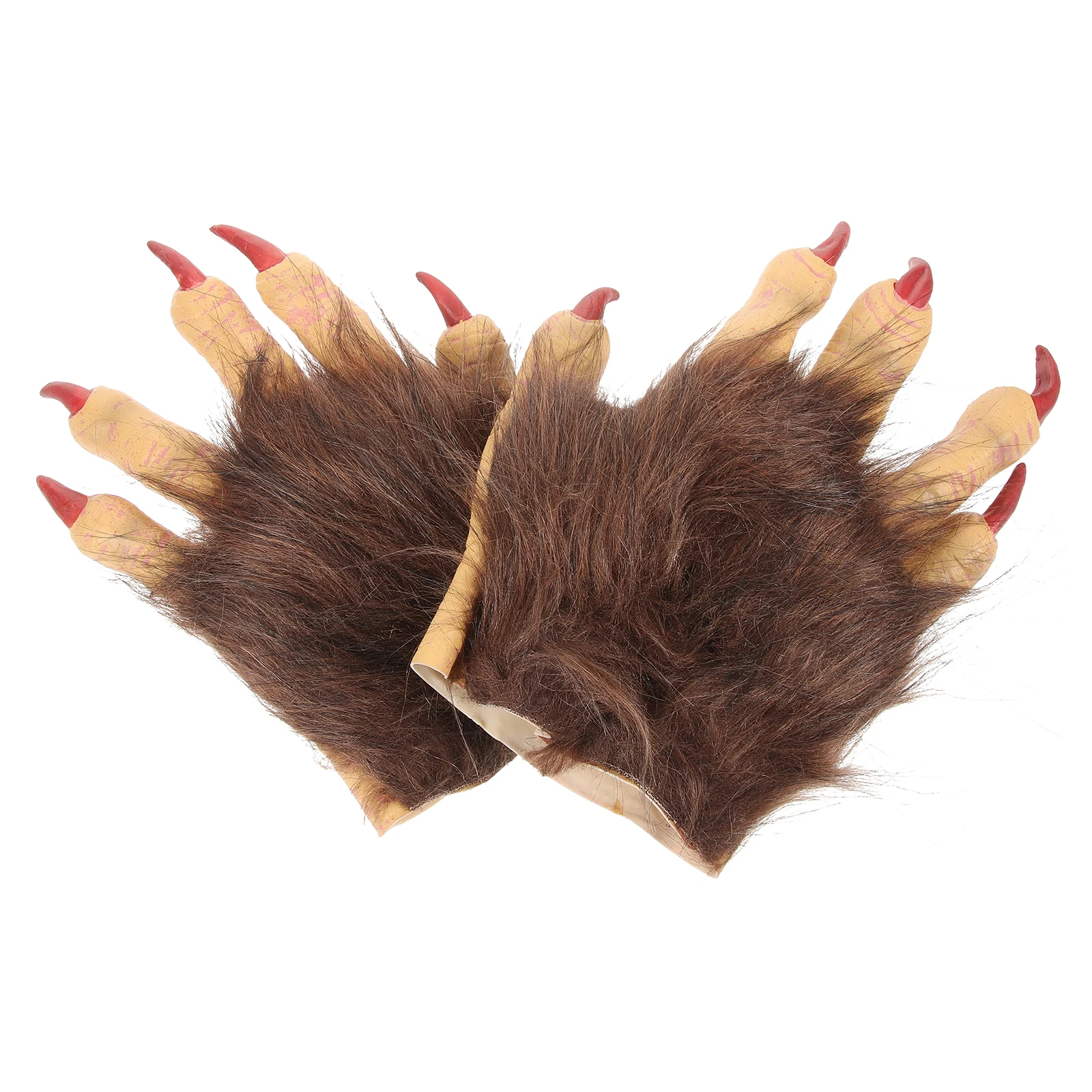 Wolf Gloves Scary Halloween with Claws Costume Party Cosplay Animal Props Handmade