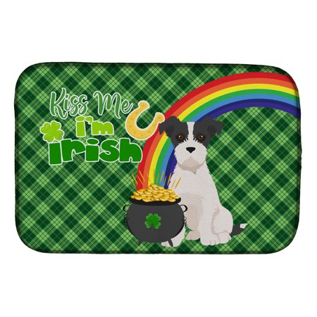 Black White Wirehair Jack Russell Terrier St. Patrick s Day Dish Drying Mat 14 in x 21 in