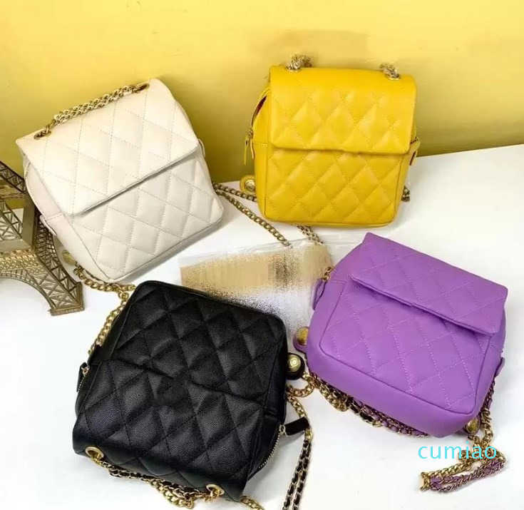 Designer-Mini Backpack Style Chain Solid Color Refinement Handmade Handbag Rhombus Lattice Zipper Leather Wallet Single-Shoulder Bag, Black
