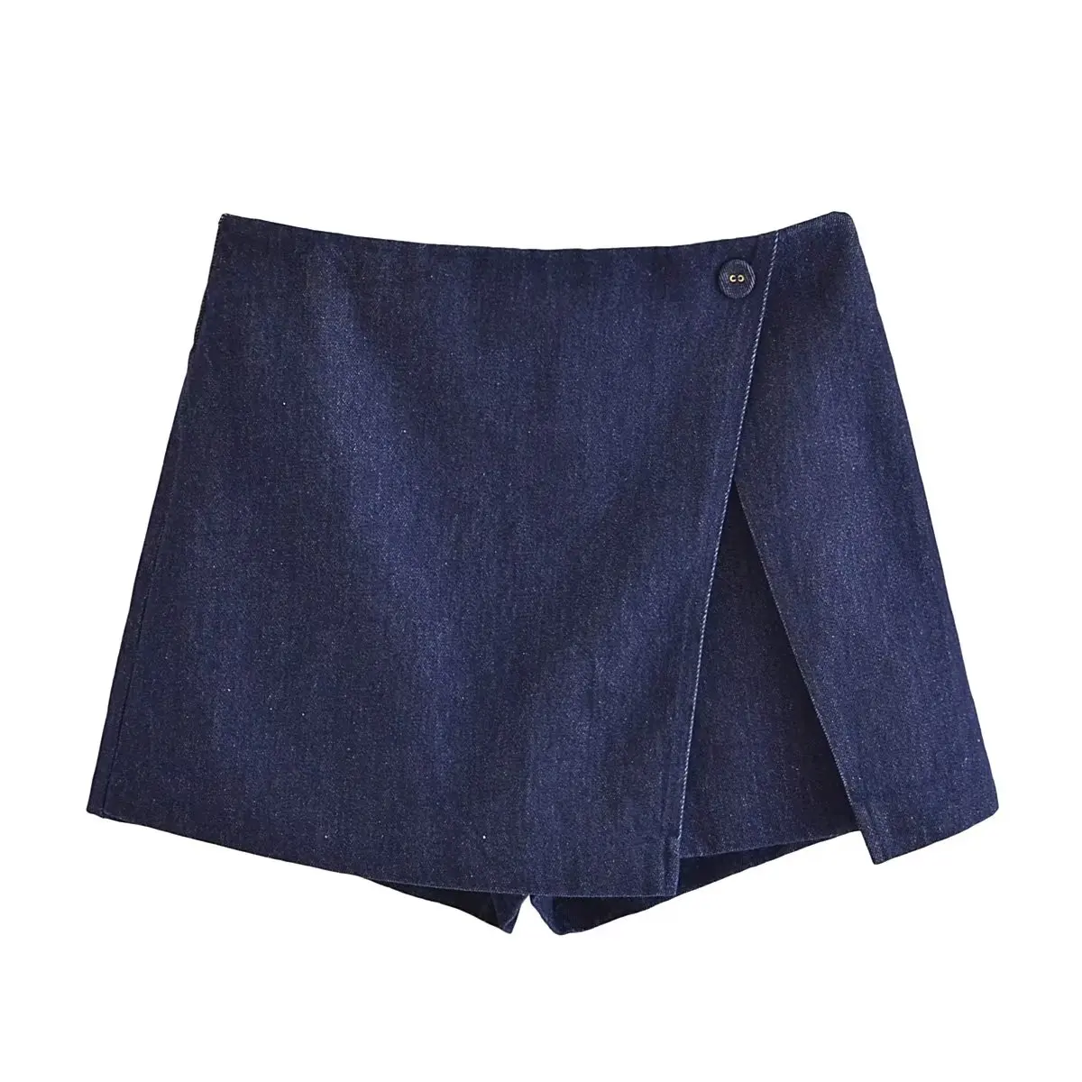 Women 2023 Autumn New Chic Fashon Golden Button Adorn Shorts Skirts Vintage High Waist Side Pocket Zipper Female Skorts Mujer