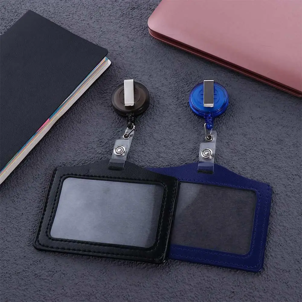 Work Card Badge Holder Clip PU Leather Card Holder Clip Retractable Badge Reels Nurse Doctor ID Badge Holder Name Card Holder