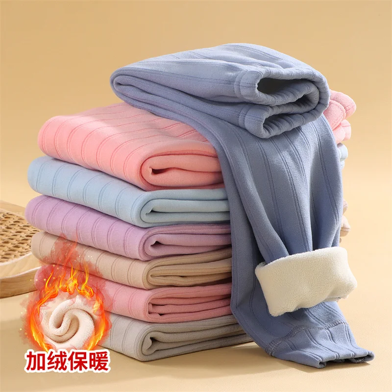 Children's Warm Pants Boys Girls Winter Soft Plush Velvet Trousers Teenager School Uniform Cotton Legging Kids Fleece Clothes