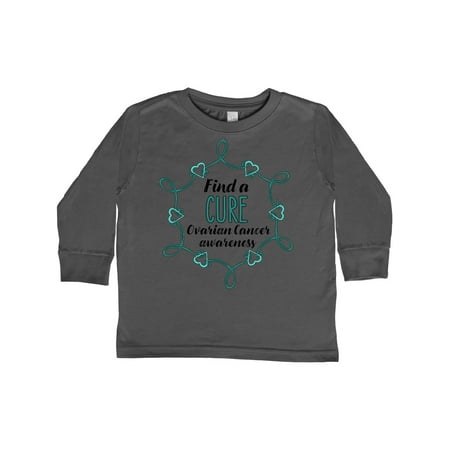 Inktastic Ovarian Cancer Awareness Find a Cure Heart Ribbon Gift Toddler Boy or Toddler Girl Long Sleeve T-Shirt