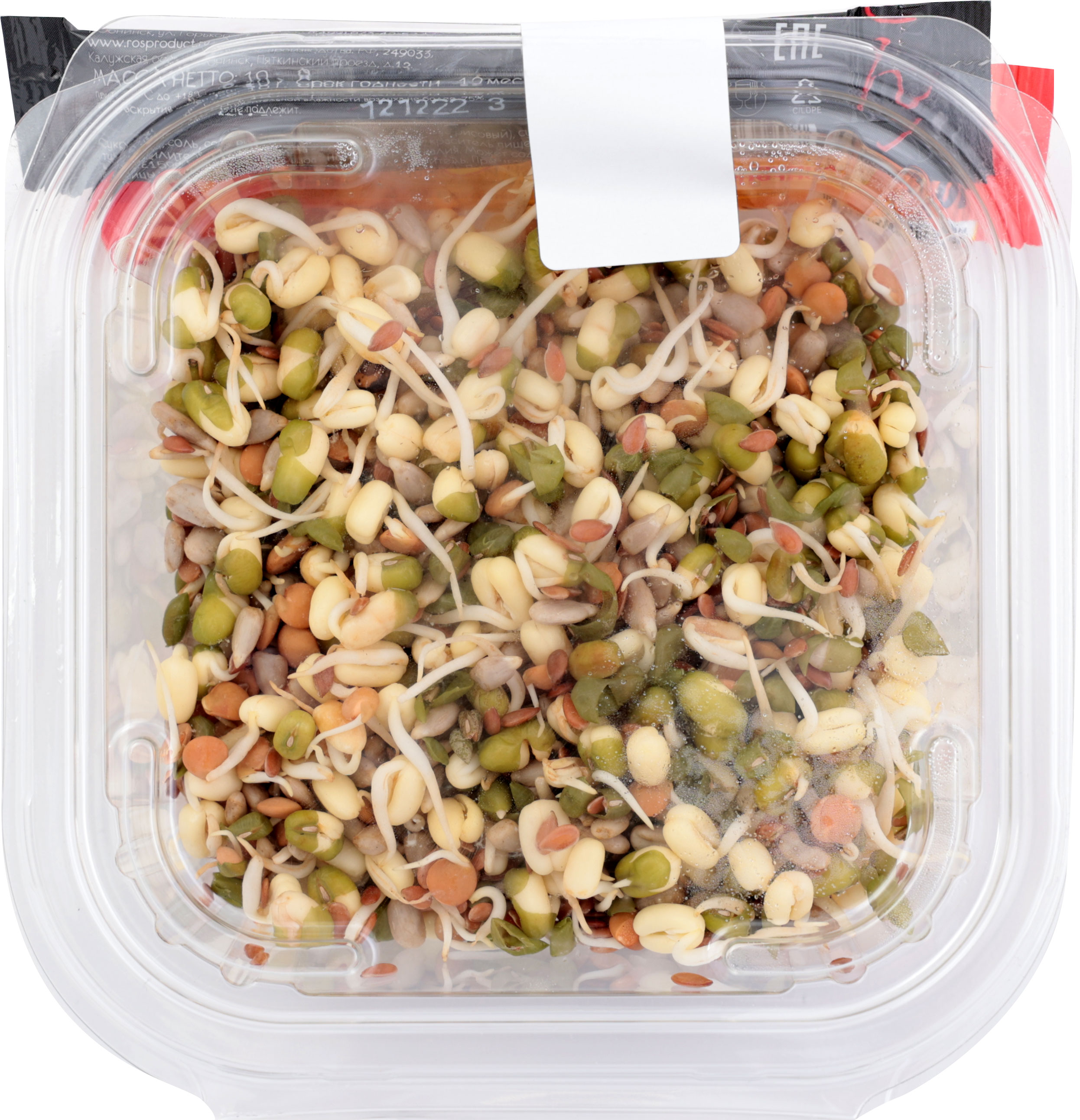 Срок годности в днях: 14Состав: проростки фасоли маш, проростки чечевицы, подготовленные семена подсолнечника и льна. Пищевая ценность: Калорийность: 200Белки: 12Жиры: 4Углеводы: 30Страна изготовления: РоссияПроизводитель: Овощи Свежие