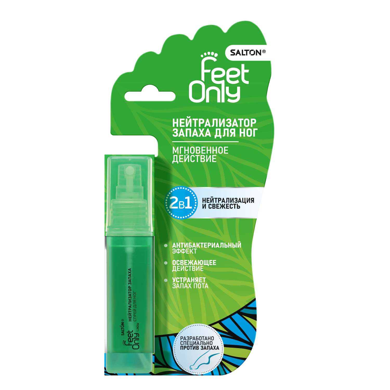 В закрытой обуви и при занятиях спортом наши ноги неизбежно потеют и может появиться неприятный запах. Нейтрализатор запаха для ног Salton Feet Only быстро решит эту проблему: он в мгновение ока устранит запах и вернет ногам свежесть.