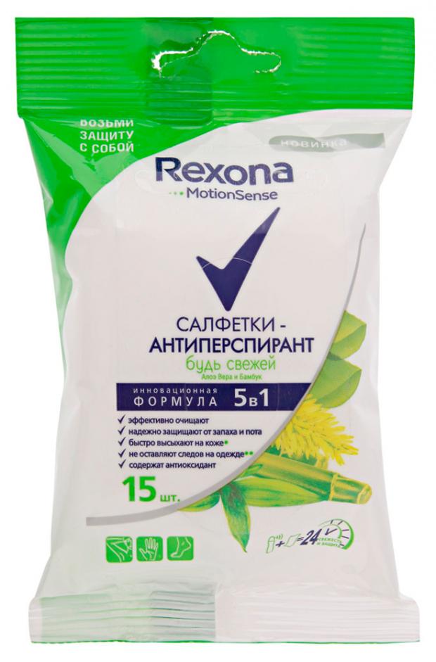 Салфетки-антиперспирант влажные Rexona Бамбук и алоэ вера, 15 шт