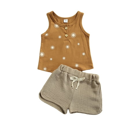 Toddler Boy Summer Outfits Shorts and Shirt Set Stripe Tank Top Polka Dot Print Elastic Waist Shorts Kids Clothes