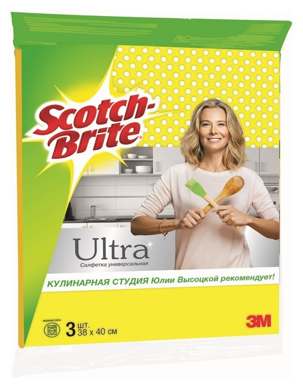 Салфетки хозяйственные Scotch-brite Ultra вискоза 140 г/м 38х40 см 3 шт/уп, В ассортименте