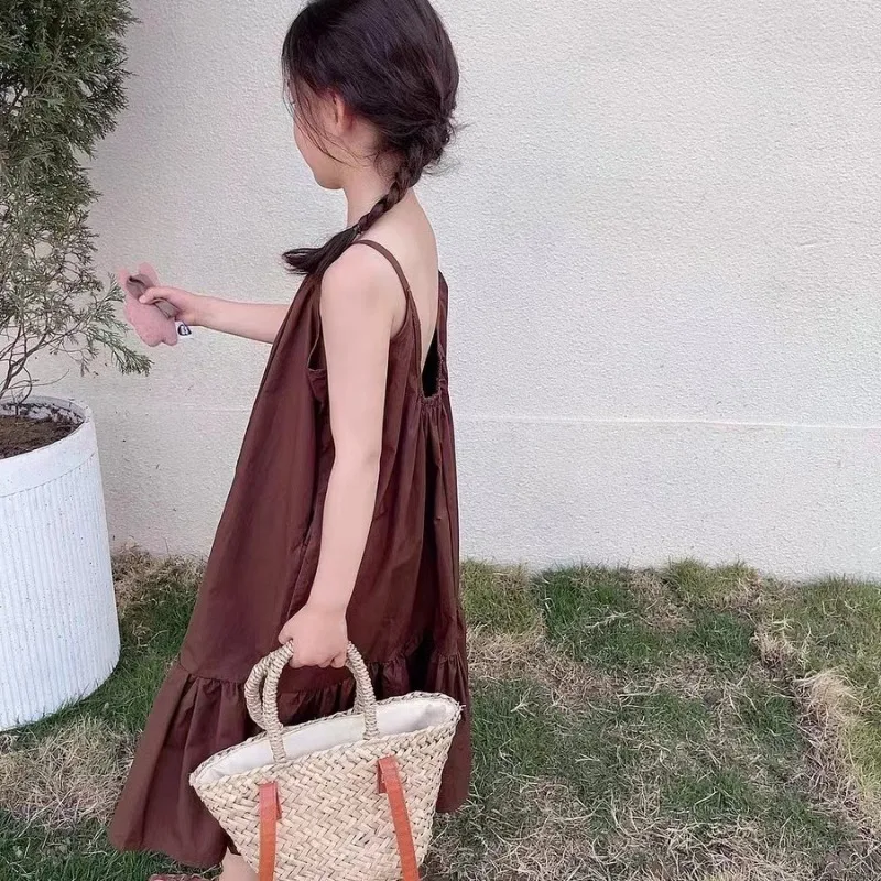 Children Clothing Girls Dress Spring and Summer Girls Cotton Suspender Skirt Korean Holiday Style Casual Simple Sundress