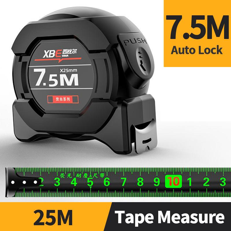 Самоблокирующаяся стальная лентаВысокоточная утолщенная мерная лента черного цвета с флуоресцентным покрытием 5M Износостойкая устойчивая к падениям измерительная лента