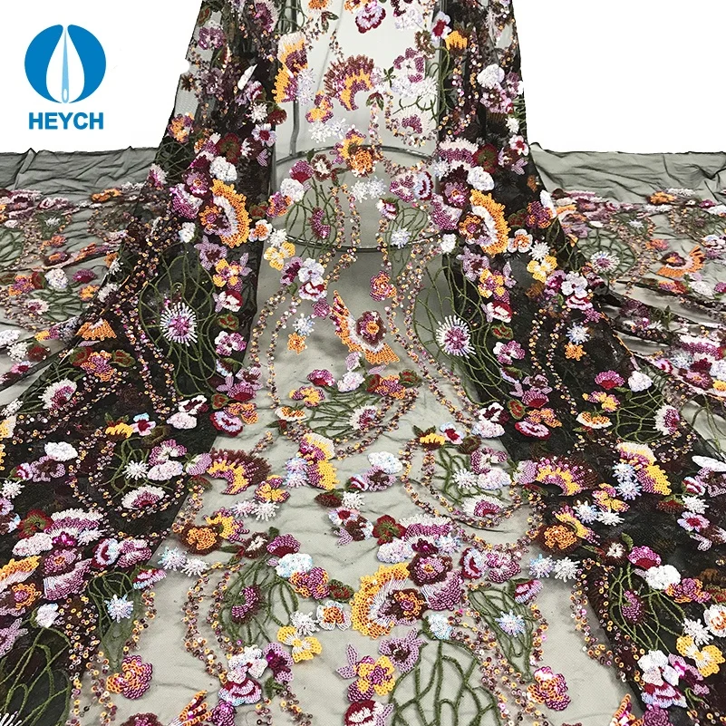 New Arrivals Lace Embroidery High quality Sequins Lace Fabric Embroidered For Sewing Dress, 3 colors