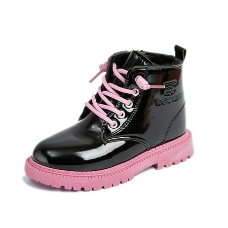 Girls Casual Color Block Martin Boots Lace-up Zip-up High Top Boots For Winter And Autumn