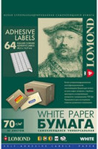 Самоклеящаяся бумага Lomond самоклеющаяся 64 делений А4 70 г/кв.м. 50 листов (2100205)