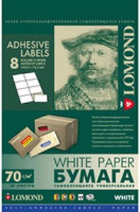 Самоклеящаяся бумага Lomond самоклеющаяся 8 делений А4 70 г/кв.м. 50 листов (2100045)