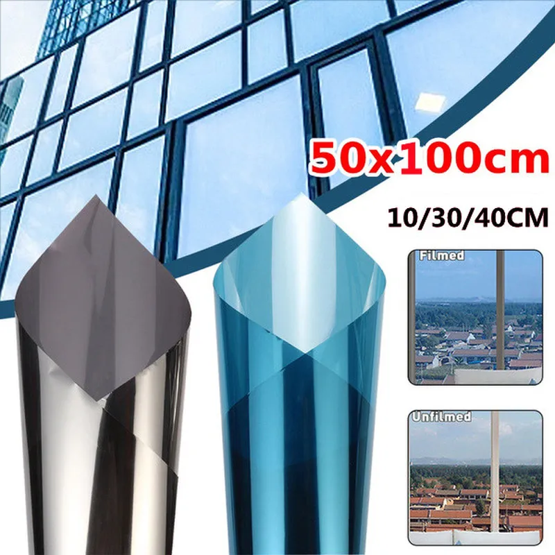 Самоклеящаяся виниловая пленка для стекол, пленка с односторонним зеркальным эффектом, с УФ-защитой, контроль тепла, для дома, черно-серебри...