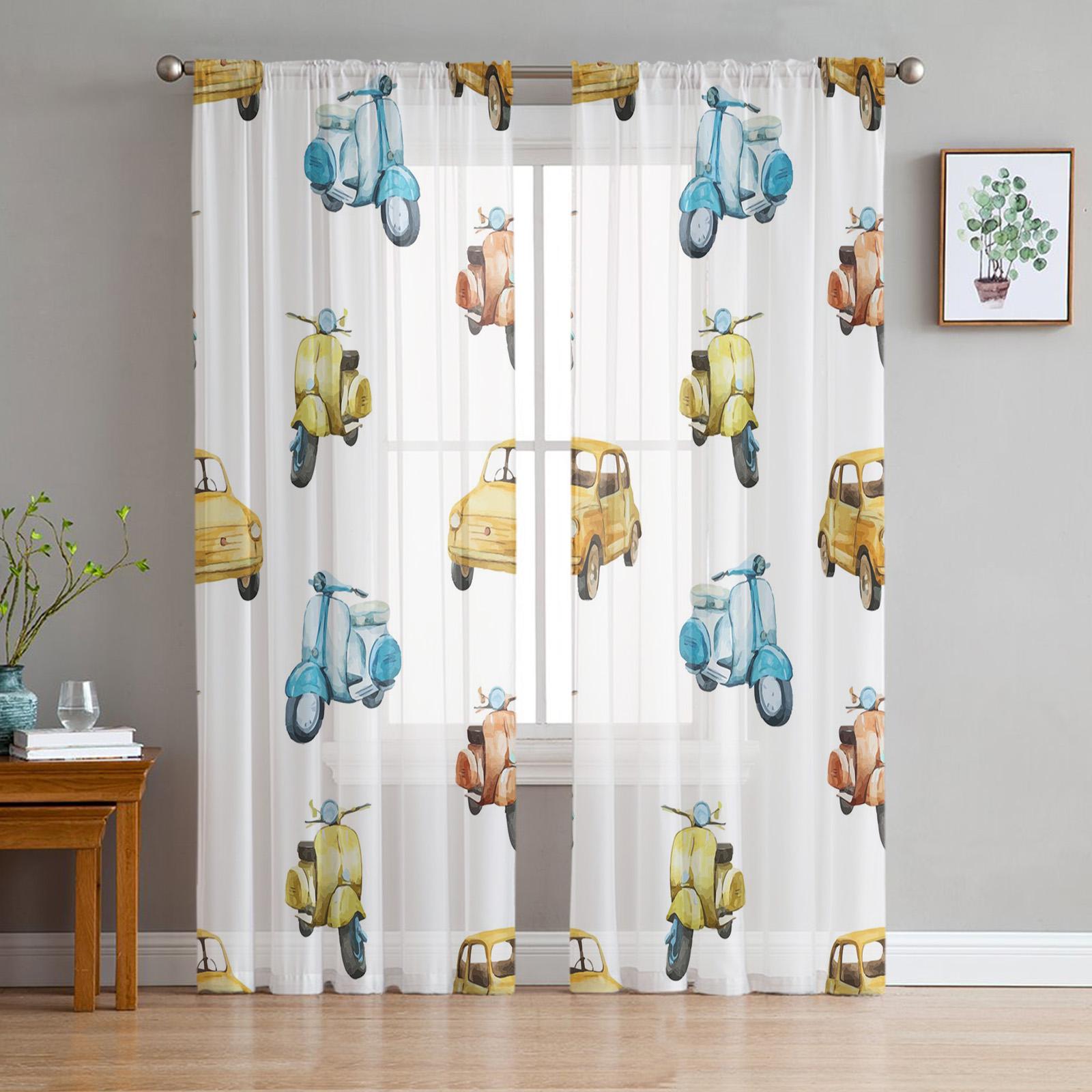 Самолет, поезд, автомобиль, мультфильм, милый прозрачный занавес для гостиной, современная спальня, вуаль, тюль, занавеска, занавеска на окно W135 x H114cm
