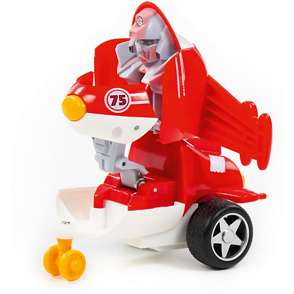 Самолёт с уникальной формой дополнен инерционным механизмом, который позволяет ему вращаться на 360 градусов. При столкновении он трансформируется. Игрушка изготовлена из качественных материалов.