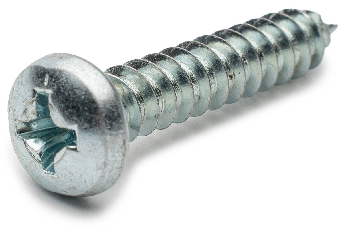Элемент крепежа в виде стержня со специальной частой резьбой и цилиндрической (полукруглой) головкой, крестообразным шлицем РН, который необходимо завинчивать с помощью отвертки с соответствующим размером наконечника или шуруповертом.