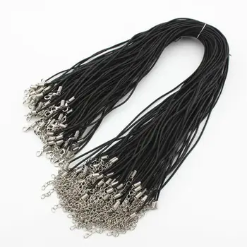 wholesale 10 Pcs/lot DIY Real Leather Chains Pendant Necklace Rope Charms Findings Lobster Clasp String Cord 1.5 mm Black