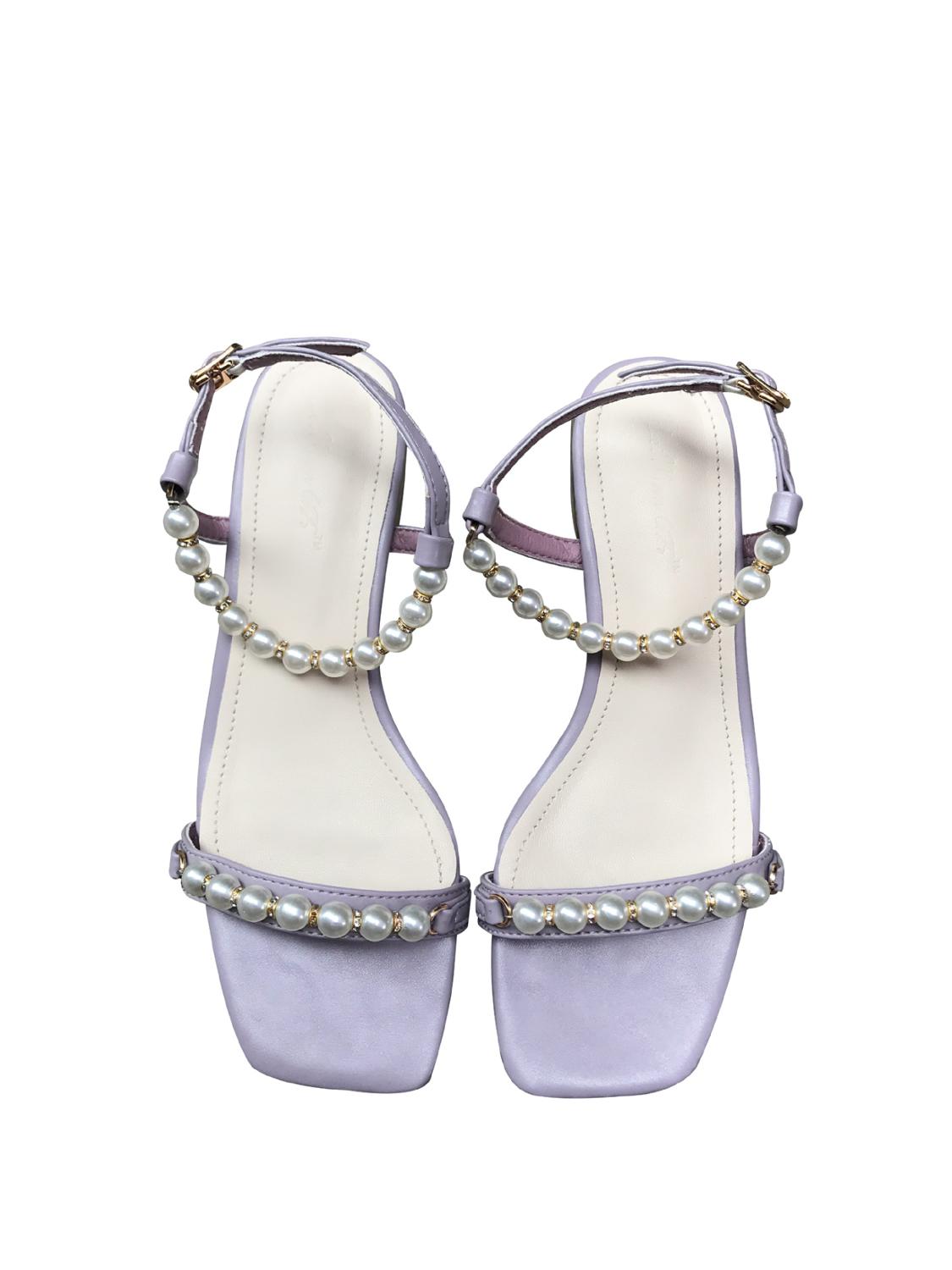 Сандалии-гладиаторы с узким ремешком на пятке и жемчужинами, женские сандалии с металлическими украшениями и бусинами, туфли на низком каблуке, женские сандалии 5 лавандовый
