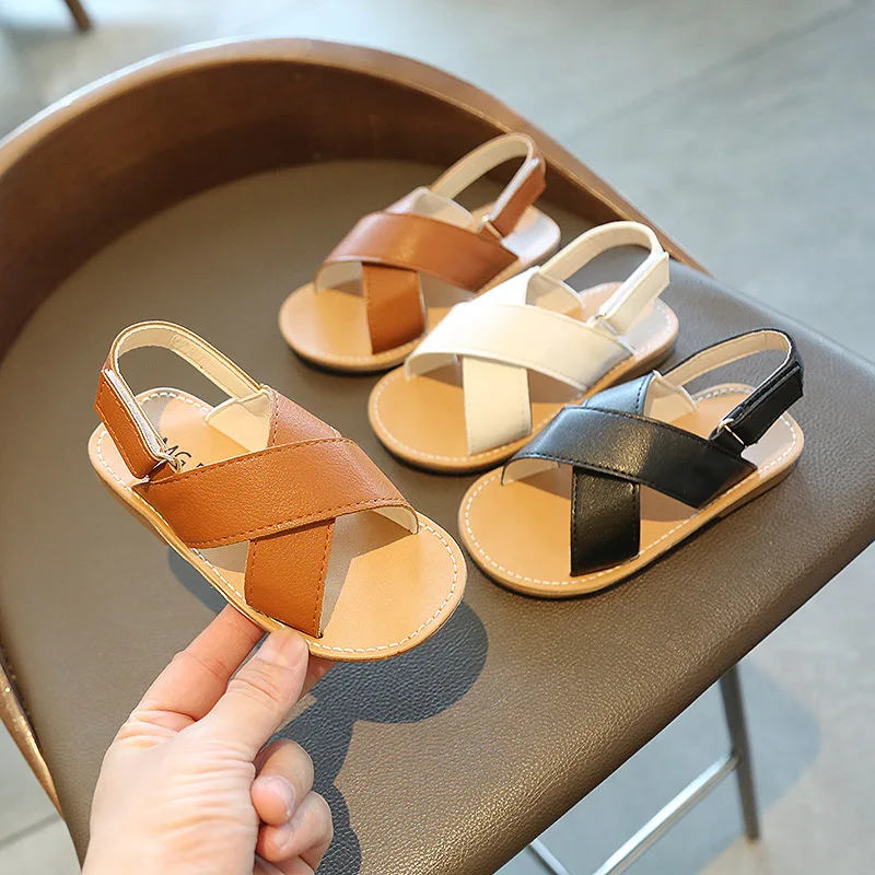 Сандалии для девочек летние модные однотонные детские пляжные сандалии с мягкой подошвой кроссовки для маленьких мальчиков на плоской подошве SMG183