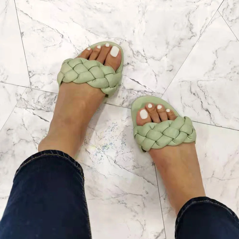 Сандалии женские кожаные, пляжные шлепанцы, открытый носок, однотонные, плетеные, модные, летние