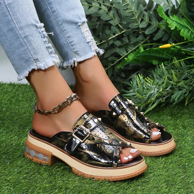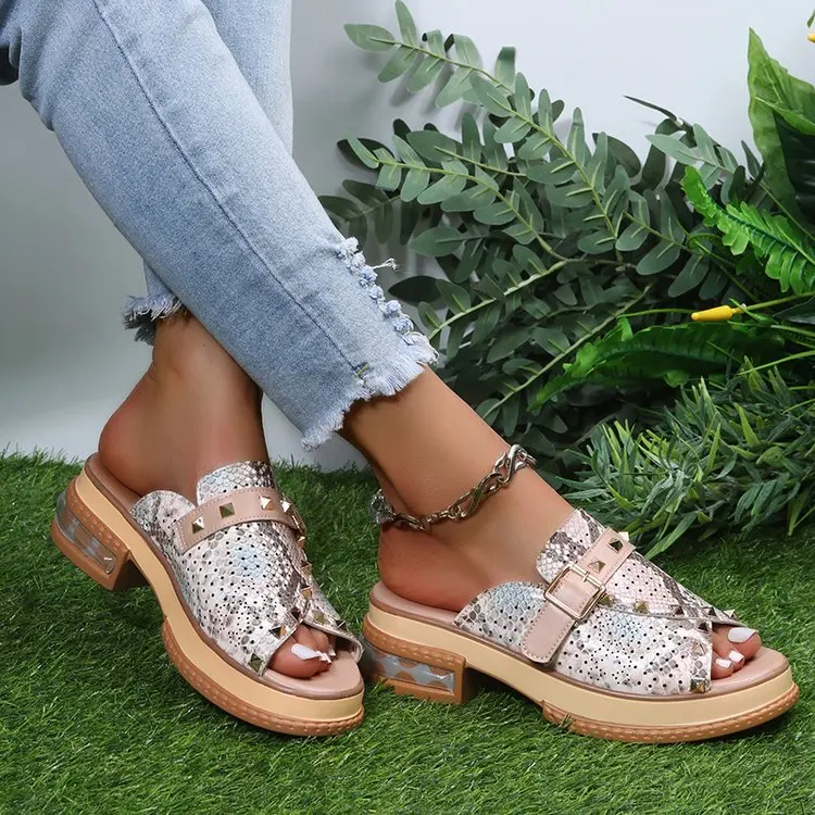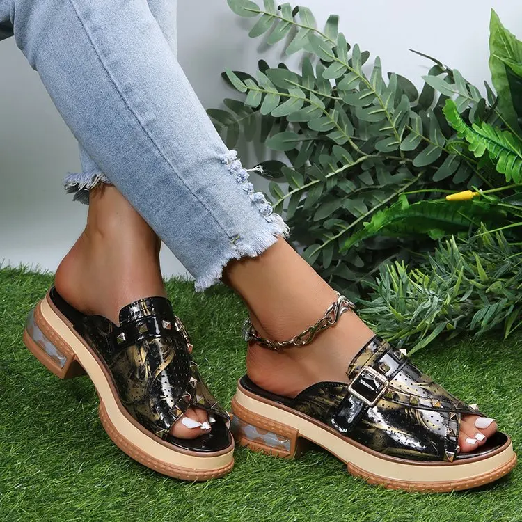 Сандалии женские на высоком каблуке, босоножки с заклепками, повседневная обувь, лето 2022