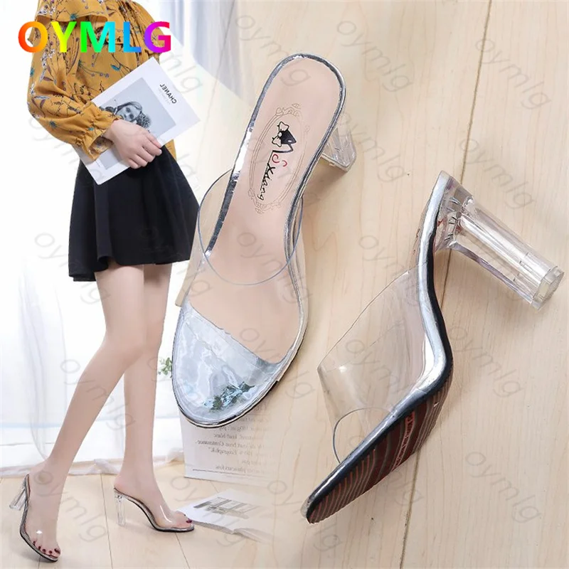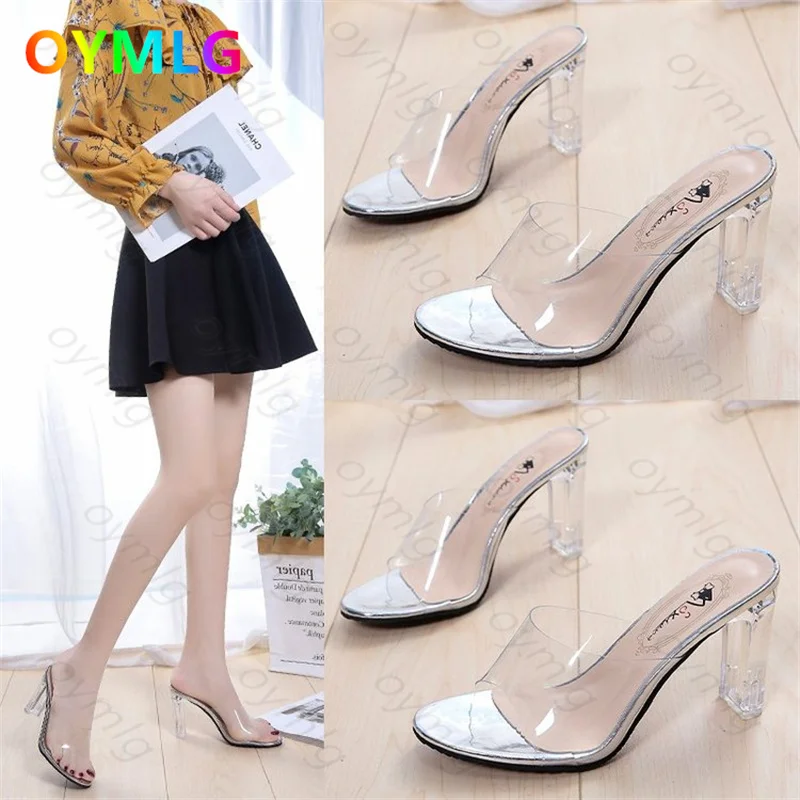 Сандалии женские на высоком каблуке, прозрачная пикантная Свадебная обувь, пляжные шлепанцы