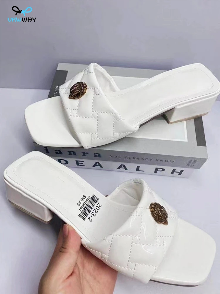 Сандалии женские на высоком каблуке, туфли с пряжкой, с металлическими пуговицами, роскошные уличные туфли на плоской подошве, лето