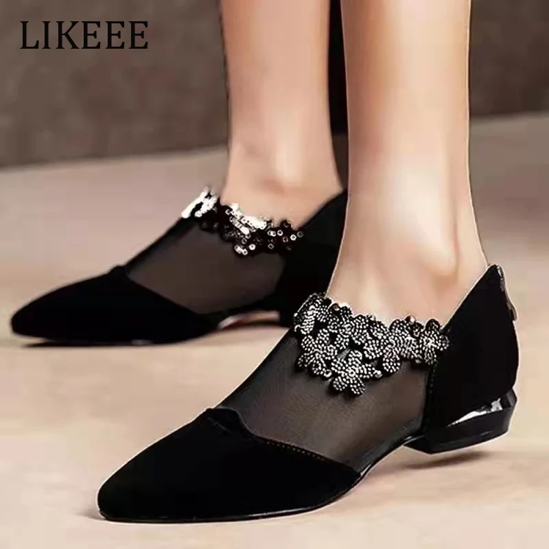 Сандалии женские на низком каблуке, дышащая сетчатая обувь с вырезами, заостренный носок, летние босоножки