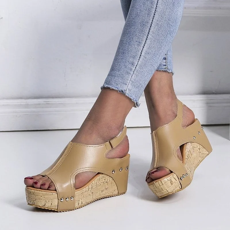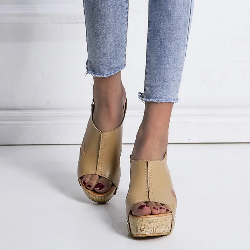 Сандалии женские на платформе, босоножки на танкетке, высокий каблук, открытый носок, летняя обувь
