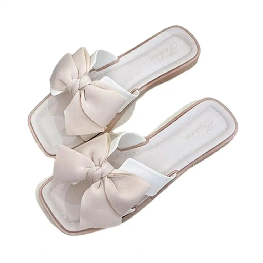 Сандалии женские на плоской подошве, Нескользящие, с бантом, летняя пляжная обувь для дома и улицы